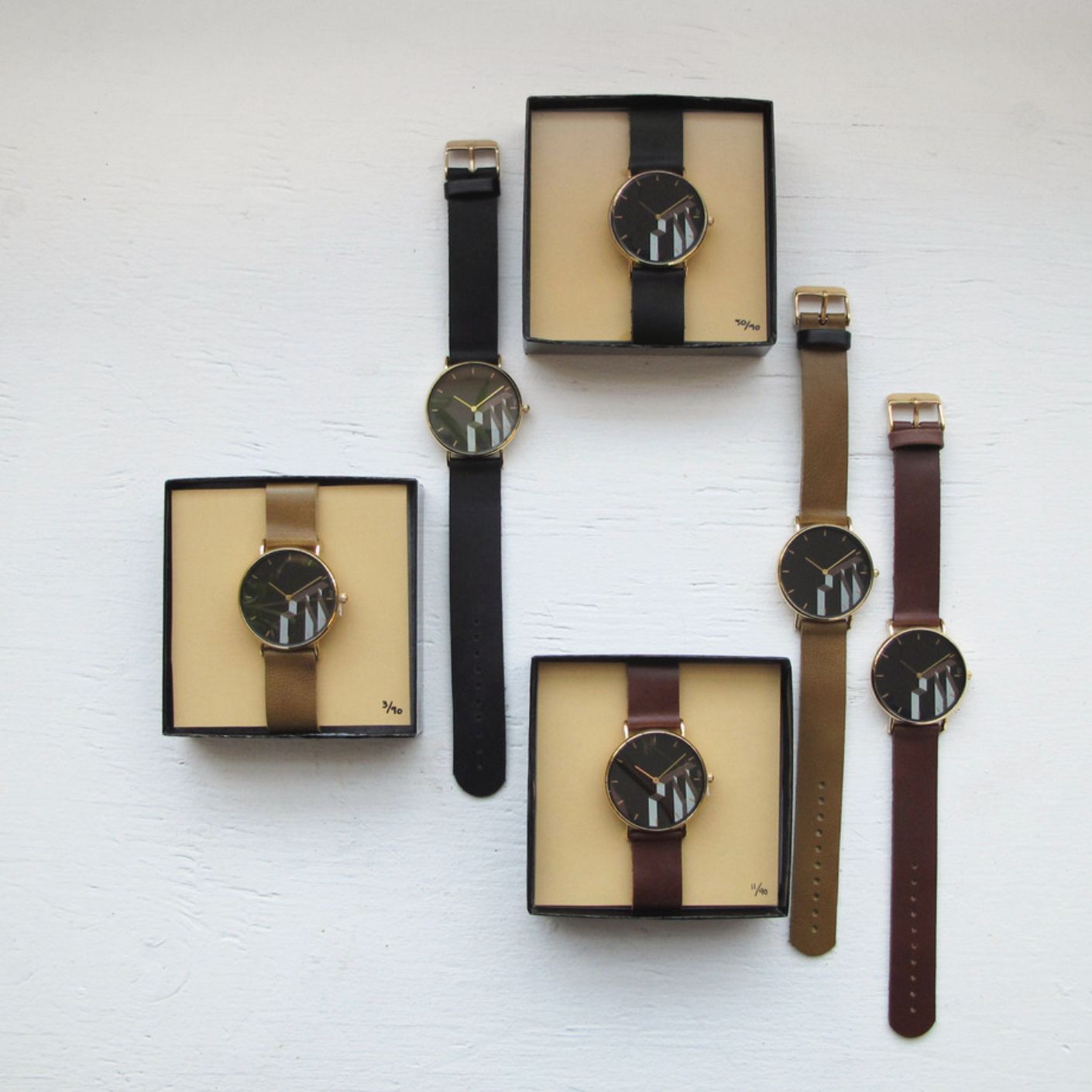 These timeless and architectural watches were designed by Ivan Lassere, a visual artist. Created in 2018, they didn't take long to go out of stock! We had only printed 90 of them, and they were all numbered by the artist.